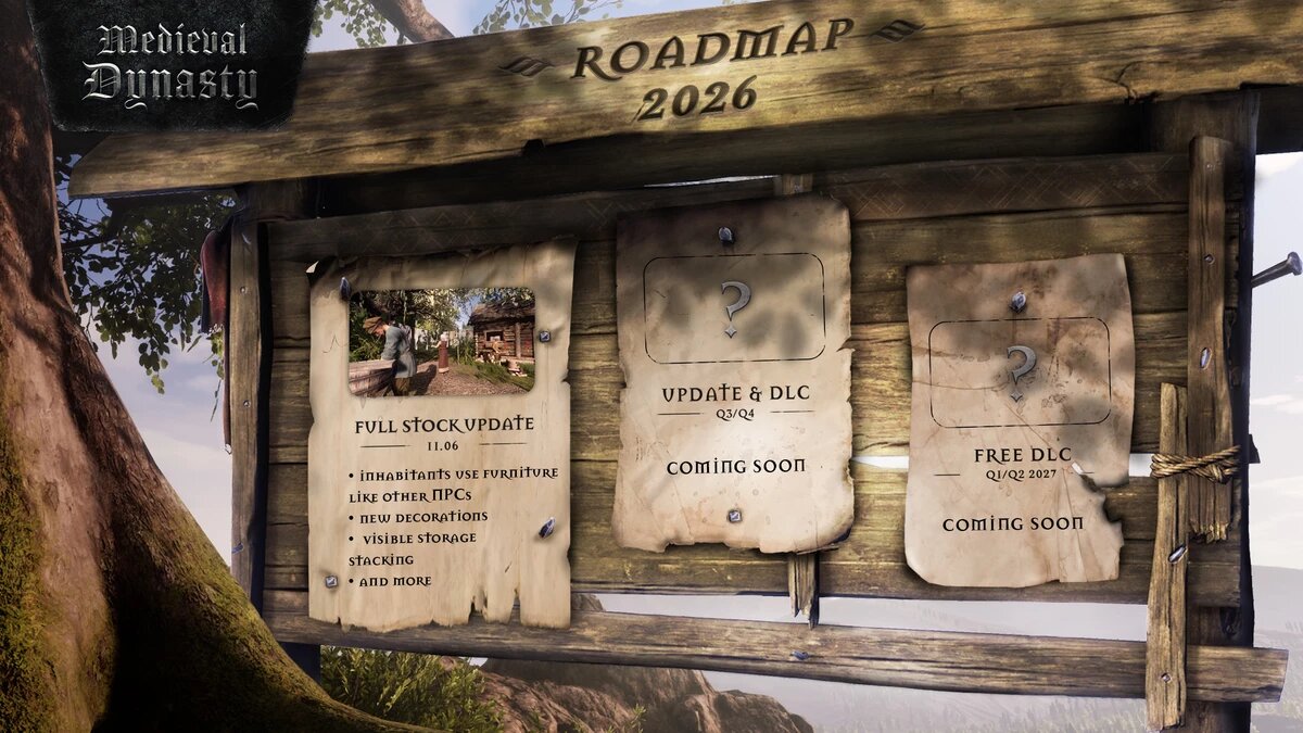 Разработчики Medieval Dynasty представили дорожную карту на 2026 год и раскрыли детали ближайшего крупного обновления под названием Full Stock. Патч нацелен на усиление погружения и оживление жизни в поселениях, делая деревни заметно более живыми и детализированными. Главное нововведение — расширенная бытовая анимация жителей. Начиная с 11 июня, игроки смогут наблюдать, как поселенцы занимаются повседневными делами: стирают одежду, колют дрова и выполняют другие бытовые задачи, создавая более естественную атмосферу жизни средневековой деревни. Также обновление расширит систему декораций. Разработчики добавляют новые элементы окружения, вдохновлённые поселениями в игре, а также полностью уникальные объекты. Среди них — дополнительные контейнеры, кучи ресурсов и улучшенные цветочные горшки с прогрессией внешнего вида. Ещё одно изменение касается визуализации богатства поселения. Теперь запасы ресурсов и еды будут постепенно отображаться в хранилищах, позволяя наглядно видеть рост и разви