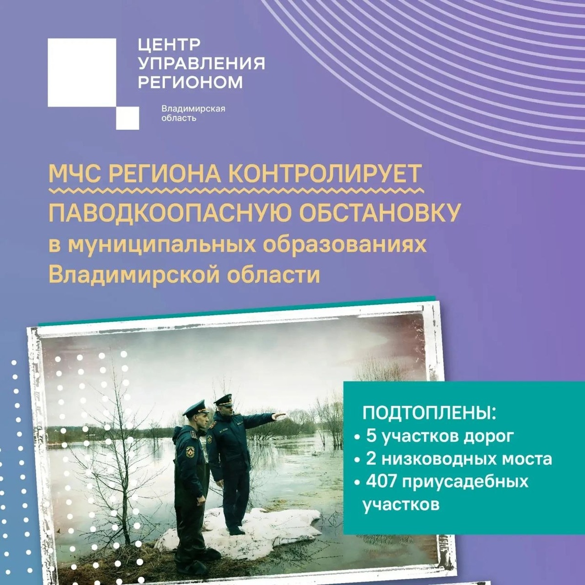 По информации МЧС России по Владимирской области паводковая ситуация в регионе постепенно стабилизируется: уровни воды в большинстве рек