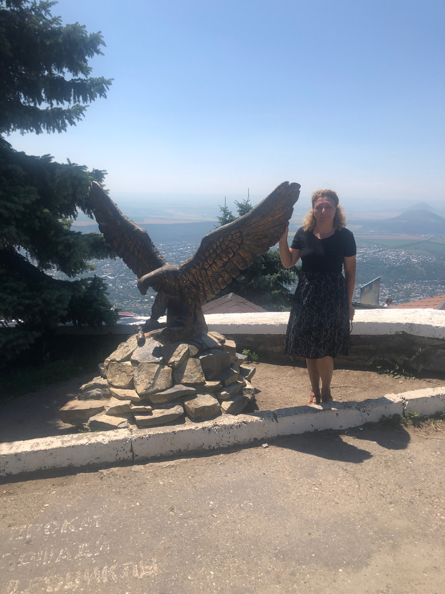 Первое близкое знакомство с горами состоялось в лихие времена Ковида. Поехали мы с дочерью и подругой в Пятигорск, где когда-то охотились за бриллиантами Киса и товарищ Бендер. Ехали на поезде около суток. Поезд хороший, двухэтажный. В нем только купе. Купе недешевы, сейчас около 10 тысяч, ну тогда подешевле были. Есть и другие поезда с плацкартой и самолеты тоже есть. Гостиницу сняли у подножия горы Машук. Она так и называлась. Гостиница похожа на советскую годов 70-х. Но зато двухкомнатный, трехместный номер с кондиционером стоил сущие копейки. Турагентство, от которого брали экскурсии находилось в гостинице. И за все поездки мы заплатили прямо на ресепшен. На улице тоже много продавцов поездок стоит. Выбрать есть из чего.