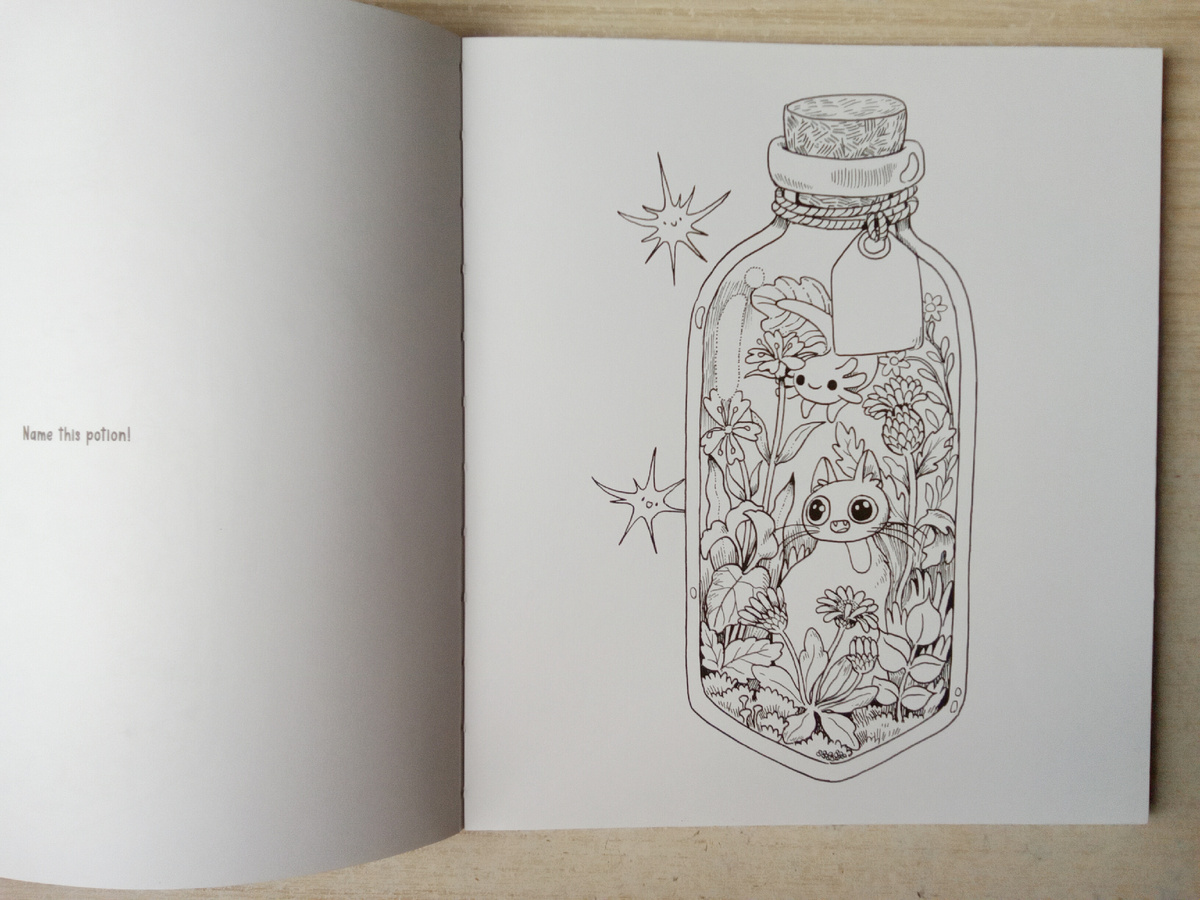 Сегодня покажу, как я раскрасила иллюстрацию в одной из моих любимых раскрасок - Spooky. Стараюсь брать книгу каждый месяц. Двигаюсь по порядку, поэтому на этот раз мне выпала вот такая картинка с кошечкой, аксолотлем в банке. Люблю подобные картинки. Они несложные и интересные. Хорошо, что их здесь много.