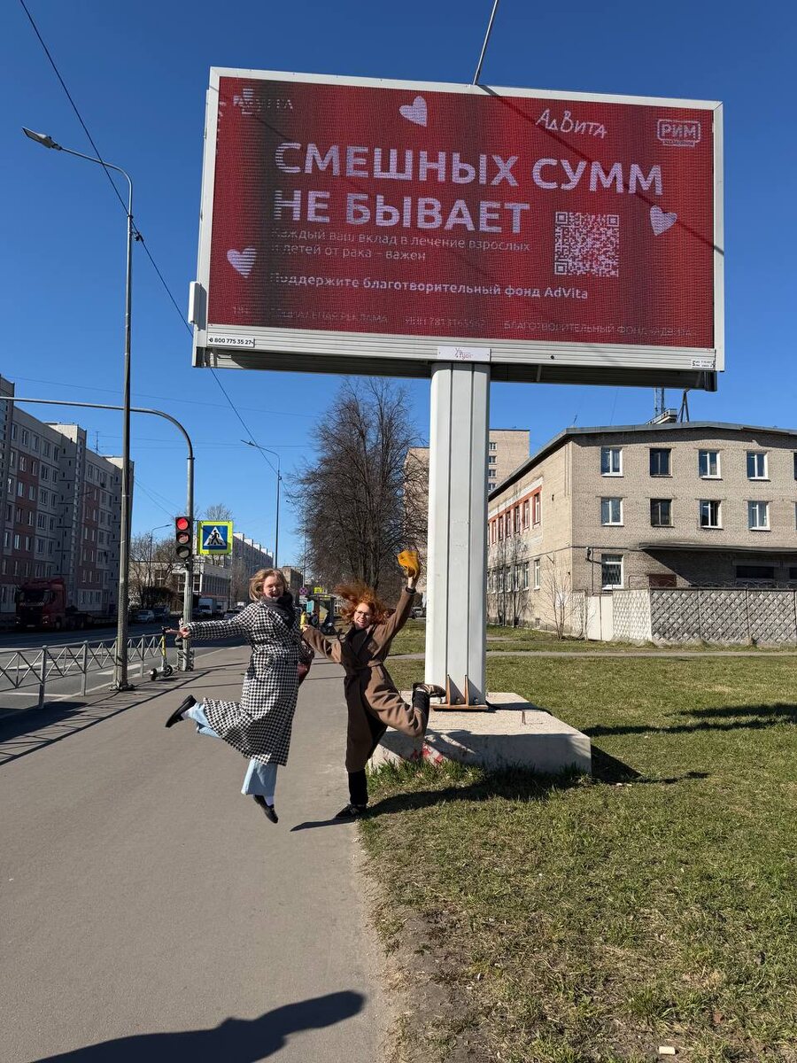 «О! Мы появились на медиаэкранах города! До конца мая нашу рекламу можно будет увидеть по всему городу» — услышали мы радостную новость на прошлой неделе от Марины, фандрайзера фонда. Сразу побежали по офису делиться: медиагруппа «РИМ» поддержала нас в акции «Смешных сумм не бывает», и теперь о ней смогут узнать еще больше людей. Недолго думая, мы поехали смотреть рекламу своими глазами, тем более что два экрана оказались всего в 10 минутах от фонда. Приехали на место, стоим, ждем с замиранием сердца… и через несколько секунд видим себя на экране. Внутри восторг, даже прохожие начали оглядываться, пытаясь понять, что же мы там так внимательно рассматриваем. А мы еще минут десять не могли уйти: смотрели, радовались и ждали снова эту короткую, но такую важную для нас 5-секундную рекламу. Акция «Смешных сумм не бывает» идет уже вторую неделю, и за это время вместе с 330 жертвователями собрали 134 408 рублей. Благодаря этим средствам мы сможем оплатить аренду квартиры для иногородних подоп