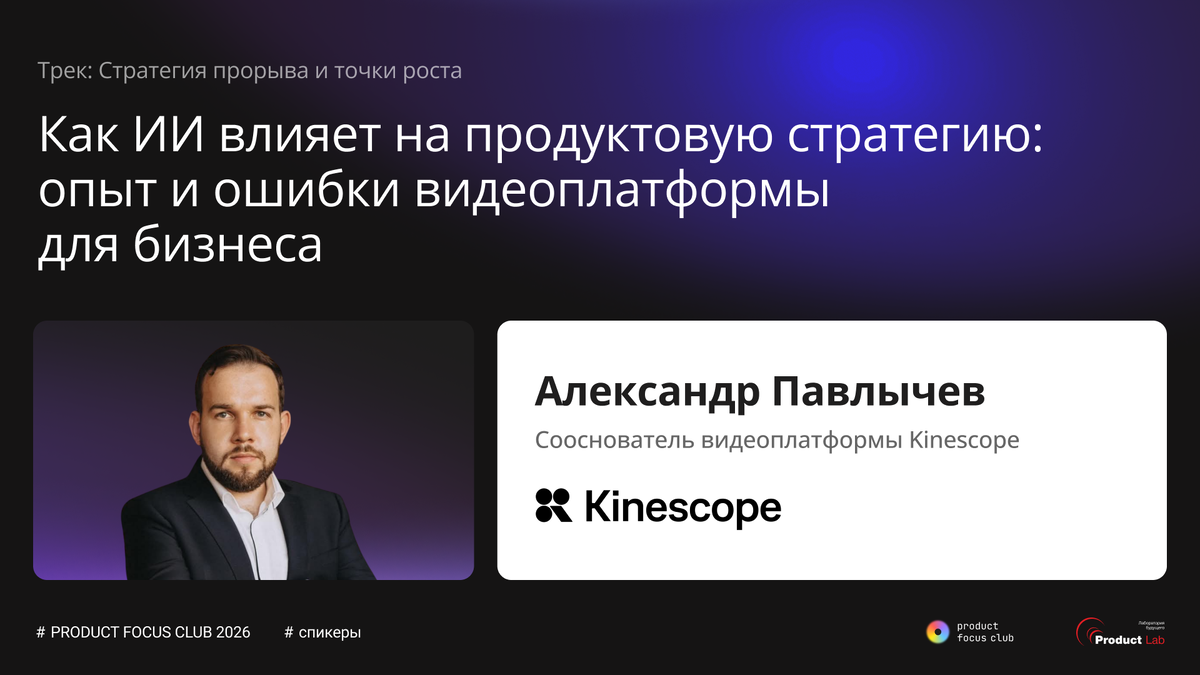 17 апреля Kinescope будет на главном событии весны про будущее продуктов и бизнеса в эпоху перемен и AI! Kinescope примет участие как партнеры онлайн-трансляции и партнеры трека «Стратегия прорыва и точки роста», а еще в этом треке выступит сооснователь Kinescope – Александр Павлычев — Когда «AI-first» приносит стратегическое преимущество, а когда дополнительную сложность — ИИ при работе с видео — узкие места — MCP-протокол: новый стандарт взаимодействия с продуктом и проблема доверия — Где ИИ даёт профит уже сейчас: точки роста Принять участие можно как очно, так и онлайн!