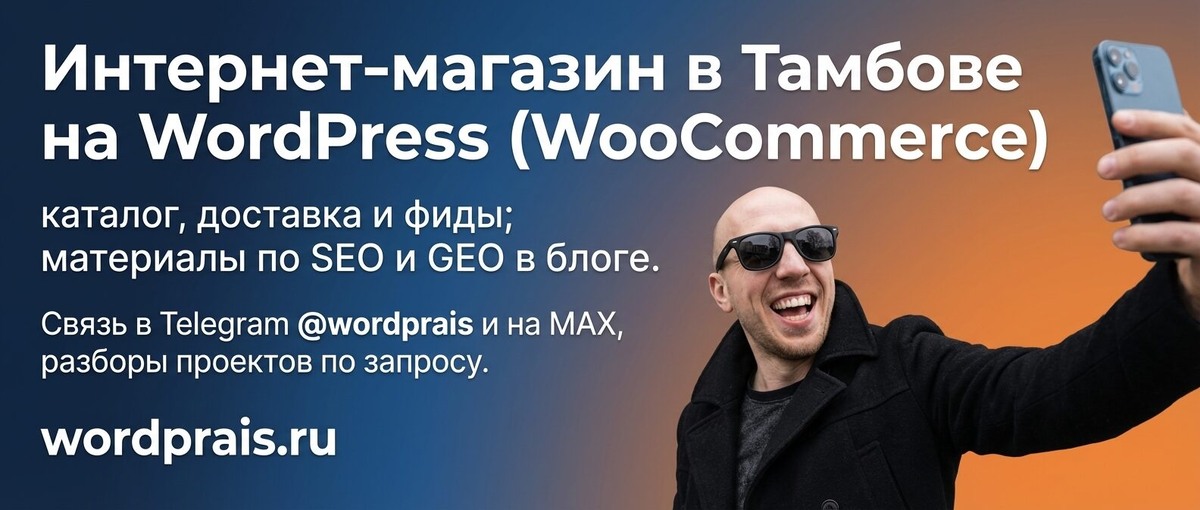 Сверьте каталог и доставку с формулировками в поиске по Тамбову, проверьте скорость на телефоне и напишите — обсудим запуск магазина на WordPress.