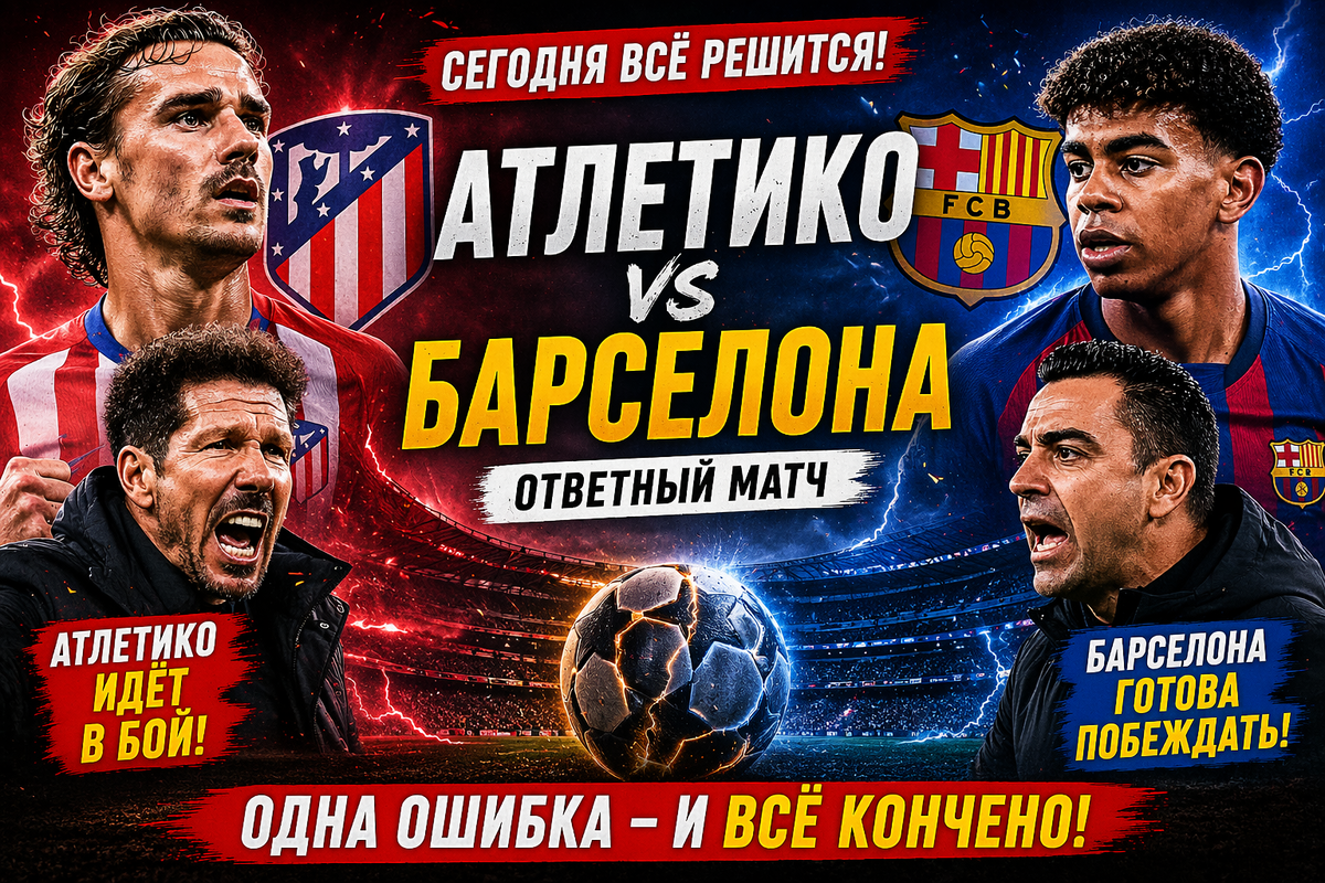 «Атлетико» принимает «Барселону» в ответной встрече. И здесь уже не будет осторожности — ставки слишком высоки.
