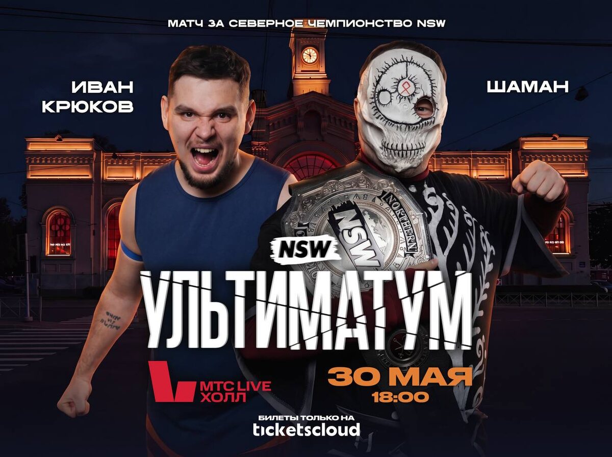 ✨БИЛЕТЫ: nsw.ticketscloud.org Первый анонсированный матч на главное шоу весны от NSW и сразу титульный: Шаман будет защищать Северное Чемпионства от Ивана Крюкова. ———————————————— NSW УЛЬТИМАТУМ 2026 Дата: 30 мая 2026 г. Место: МТС Live Hall Двери: 17:00 Время начала шоу: 18:00 ———————————————— По вопросам рекламы и сотрудничества - spbnorthernstorm@gmail.com