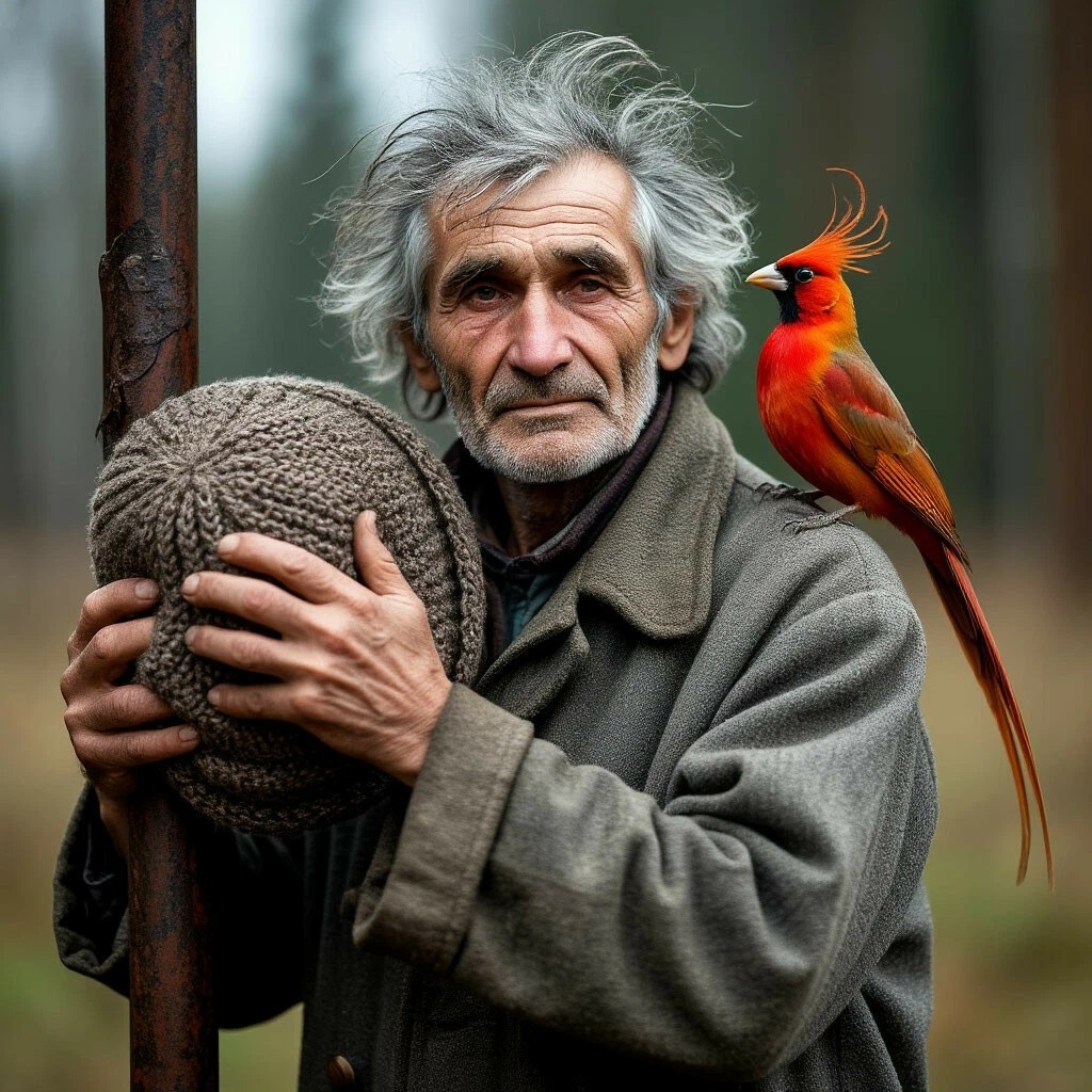 Он сел напротив, не спросив разрешения. Я поднял глаза — и первое, что увидел: пальто. Старое, ворсистое, с пуговицей на нитке другого цвета. По одежде таких людей не судят, потому что одежда для них — просто кожа, в которую душа залезла на сегодня. Он снял мокрую шапку, и из-под неё выбились седые пряди — не старые, а будто выцветшие от внутреннего света.