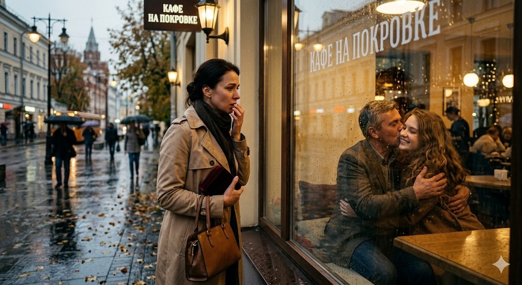 За стеклом, в теплом свете дизайнерских ламп, сидел ее муж. Тот самый человек, с которым она сегодня утром пила кофе на их крошечной кухне. Тот, кто поцеловал ее в макушку и сказал: «До вечера, родная. Люблю тебя».