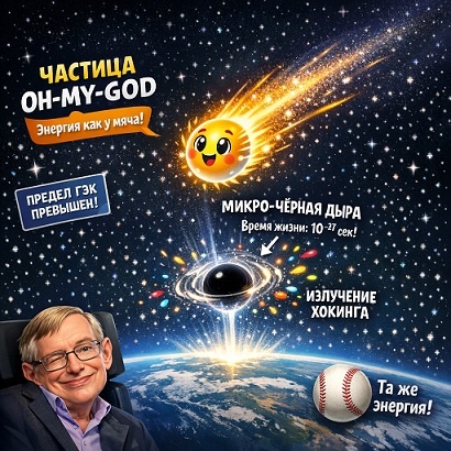 Чтобы создать черную дыру, нужно сжать колоссальную массу (а значит, и энергию) в микроскопический объем. Порог этой энергии, называемый Планковской энергией, чудовищно высок — около 10¹⁹ ГэВ (гигаэлектронвольт). Даже рекордная частица "Oh-My-God" в десятки миллионов раз слабее. По меркам "фабрики черных дыр" это все равно что пытаться пробить стену, кидаясь в нее пушинками.