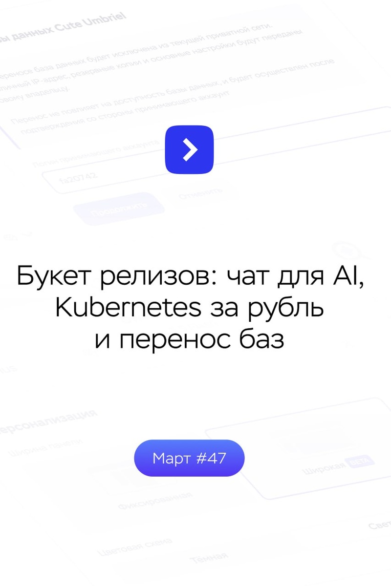 🌱 Мартовский дайджест получился немаленьким: AI-агенты обзавелись внешним чатом, Kubernetes снова доступен за рубль, а базы данных теперь переносятся в пару кликов. И еще много-много новостей, которые мы аккуратно упаковали в карточки и на сайт →