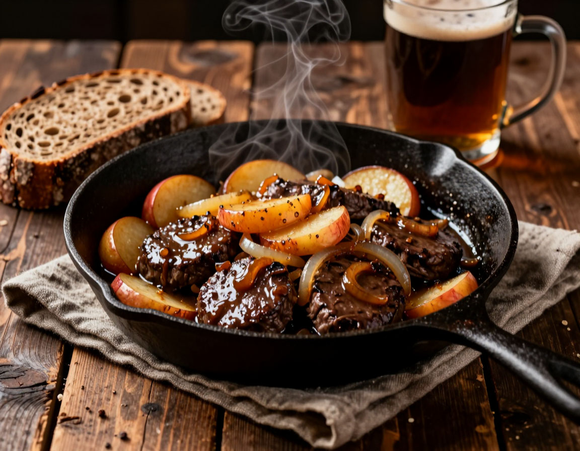 Печень по-берлински (Berliner Leber) — это изысканное сочетание нежной печени, кислинки яблок и сладости карамелизованного лука. В отличие от обычных рецептов жареной печени, этот вариант получается невероятно сочным благодаря фруктовому соку и особому способу панировки. Это сытное, ароматное и по-домашнему уютное блюдо станет настоящим украшением вашего стола. Время приготовления: 30 минут Шаг 1: Подготовка печени