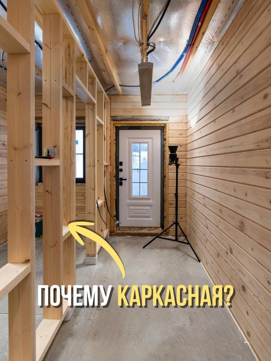 Только позже, дороже и с потерей площади. Поэтому мы в домах из бруса сразу делаем каркасные межкомнатные перегородки. На фотографиях видно, сколько внутри одной стены прячется коммуникаций — электрика, трубы, канализация 👆Когда мы зашьём стены, вы увидите только розетки, выключатели и выводы. Всё остальное будет аккуратно спрятано. В брус коммуникации не спрятать, поэтому всё равно придётся дополнительно собирать каркас. А это минус полезная площадь и двойные затраты (сначала за брус, потом за каркас). В масштабах дома разница будет ощутимой. Два важных момента: 1️⃣ Каркас и коммуникации — один процесс. Нельзя сначала сделать стены, а потом провести провода и трубы. На этапе монтажа каркаса на объекте одновременно работают электрик и сантехник. Это единый процесс, который нельзя разделить без потери качества. 2️⃣ Без проекта нельзя. Здесь много скрытых работ, которые грамотно сделать можно только при наличии детального проекта коммуникаций. Всё должно быть заранее продумано и зафикси