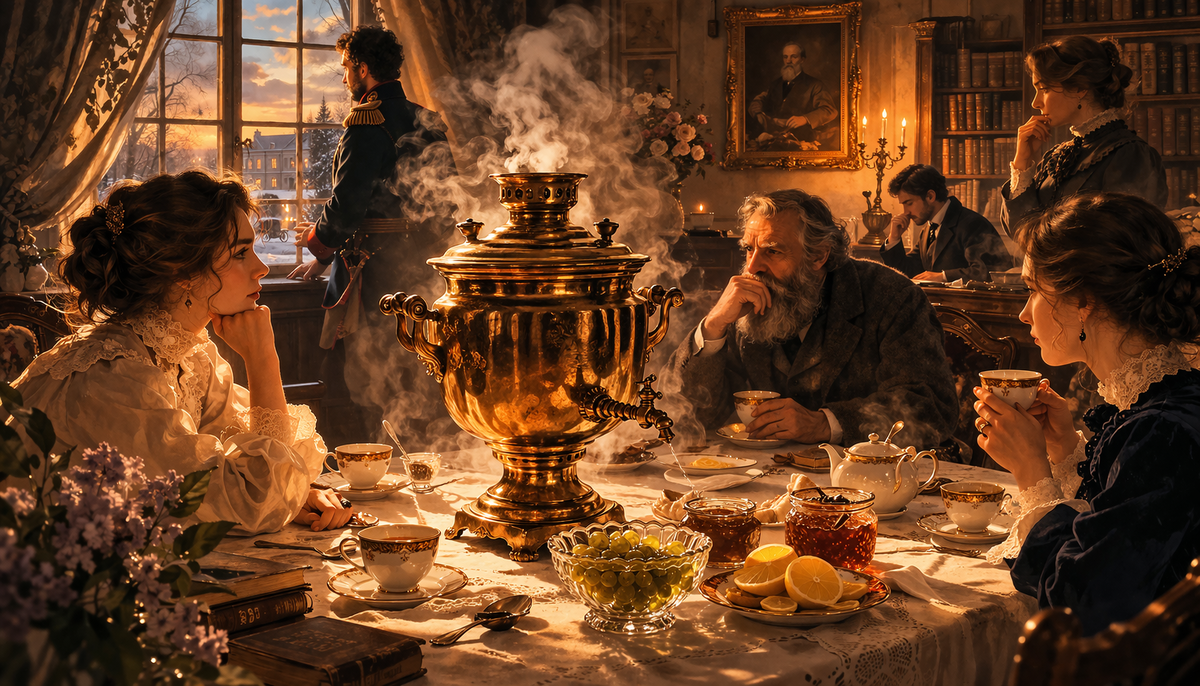 Самовар у Толстого интересен не как символ «старой России». Сам по себе он ничего не решает. Важны люди вокруг. Кто сел ближе. Кто задержался. Кто избегает взгляда. Кто говорит больше обычного. Кто молчит так, что всем приходится делать вид, будто молчания нет.