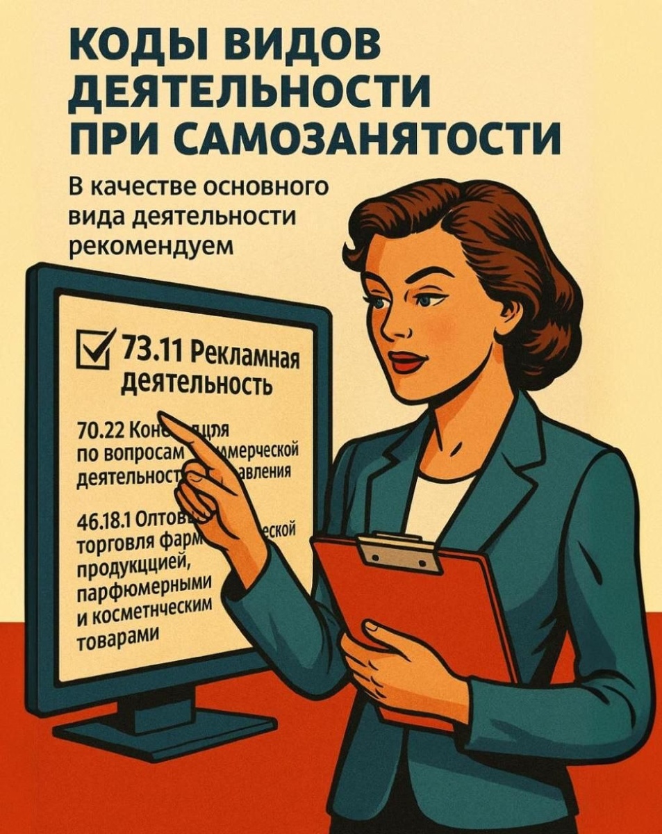 ? Партнёры, чтобы всё было красиво и юридически грамотно, рекомендуем при регистрации ИП выбирать следующие коды ОКВЭД: 🔹 Основной: 73.11 - Деятельность рекламных агентств (подходит под продажи, продвижение, воронки, рекламу и маркетинг) 🔹 Дополнительные: — 70.22 - Консультирование по вопросам коммерческой деятельности — 46.18.1 - Работа с фармацевтической, косметической продукцией и БАДами — 63.99.1 - Консультационные и информационные услуги — 73.20 - Исследование рынка и общественного мнения 📌 Эти коды отлично подходят для деятельности в сфере инфобизнеса, консалтинга, маркетинга и для нашего бренда Atomy. Настрой всё сразу правильно - и спи спокойно.