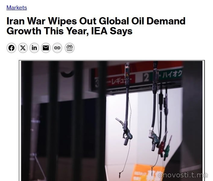 ⛽️ Мировой спрос на нефть в 2026 году падает впервые с пандемии — Bloomberg