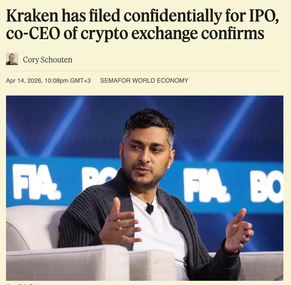 Биржа Kraken подала заявку на проведение IPO – semafor