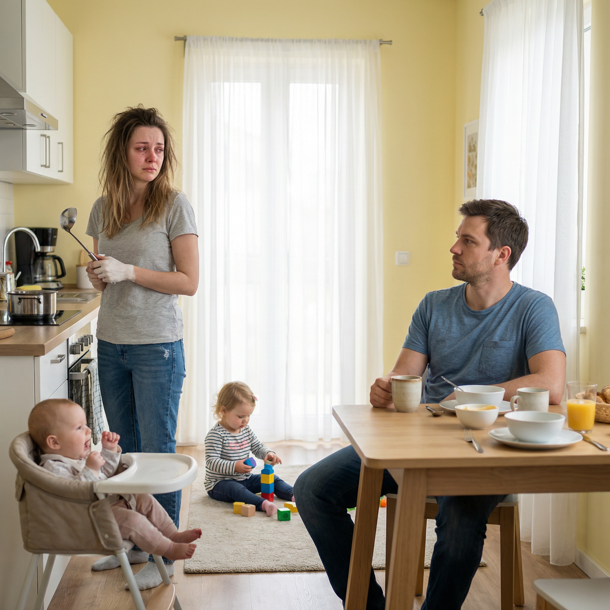Вечером, когда дети уснули и в квартире наступила та особая тишина, которая бывает только после того, как затихает последний ребёнок, Андрей пришёл на кухню.
