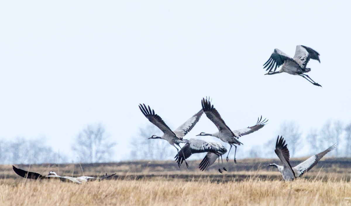К «танцам» серых журавлей добавилось их знаменитое громкое трубное курлыканье.