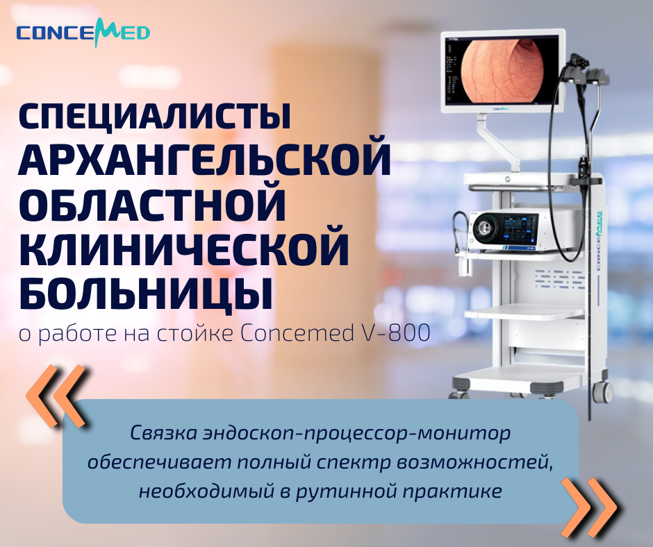 Видеоэндоскопическая система Concemed V-800 проходила апробацию в эндоскопическом отделении Архангельской областной клинической больницы в течение всего декабря прошлого 2025 года. Здесь обслуживают пациентов специализированных отделений стационара и амбулаторных пациентов из консультативной поликлиники. 🏥 За месяц специалисты отделения провели более сотни исследований и вмешательств. В частности: «Качество изображения достаточно высокое, связка эндоскоп-процессор-монитор обеспечивает полный спектр возможностей, необходимый в рутинной практике. Возможность «горячей замены» эндоскопа без отключения и перезагрузки процессора значимо экономит время персонала. Наружный диаметр вводимой части, диаметр инструментального канала 3,2 мм видеогастроскопа VG-H800T с углом поля зрения 145 градусов позволяют использовать широкий ассортимент лечебного инструментария для различных видов лечебных манипуляций,» — отметил заведующий отделением, врач-эндоскопист высшей категории Анатолий Станиславович М