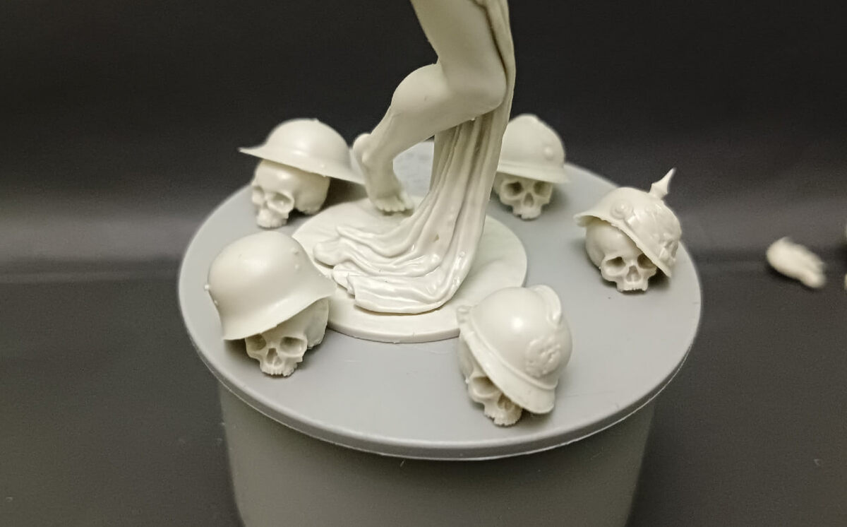 выпустили черепа и каски в дополнение к миниатюрам в масштабе 75мм.