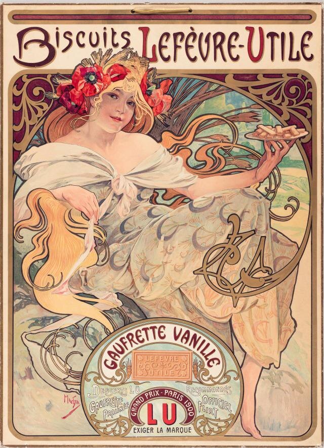 Покажу, как от рекламы получать удовольствие. Годная реклама - двигатель торговли. Реклама бывает интересная и унылая, ужасная и шедевральная. Научу вас разбираться в ней и находить красоту. Сегодня не будет мега оригинальных и креативных работ. Я хочу заострить внимание на художественной ценности рекламы. Сегодня будет праздник цвета, графики и мастерства плакатистов прошлого. Каждая из этих работ - произведение дизайна/живописи и просится как постер на стену музея современного искусства. Читатели, с тягой к прекрасному, уже давно читают телеграм-каналы Паганеля: Всё, что выходит в телеграме и не попадает в Дзен, вы можете читать в МАКсе. *** Начнём вкусным и роскошным рекламным плакатом в стиле ар-нуво ванильных вафель от «Biscuits Lefèvre-Utile». Эта цветная литография создана по рисунку знаменитого чешского художника Альфонса Муха в 1896 году. Он был постоянным художником французских кондитеров из компании "LU", создавая для них не только плакаты, но и календари, а также дизайн упа
