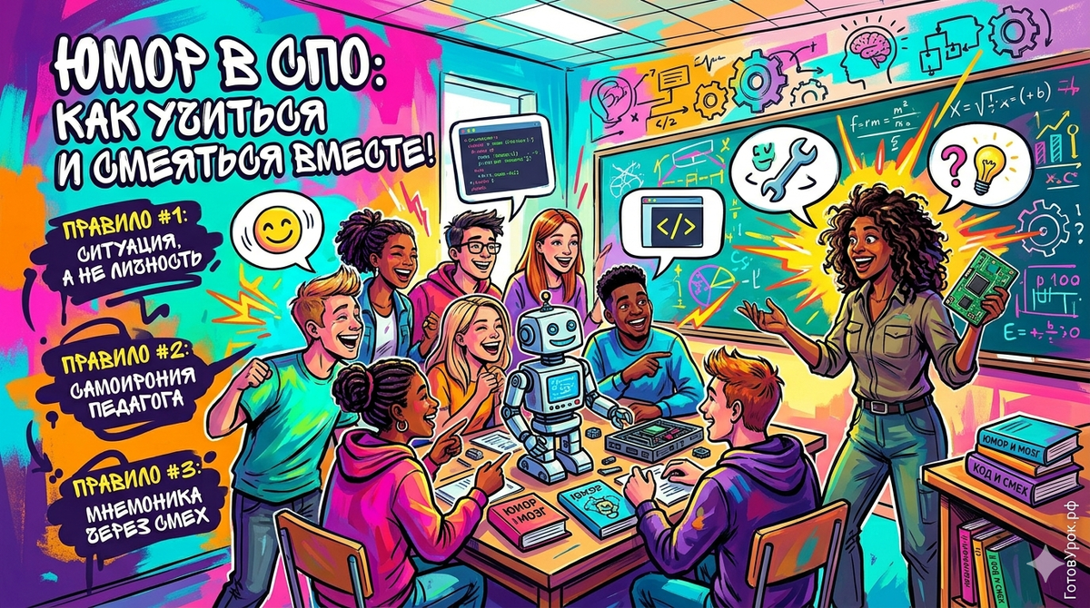 Замечали, что после удачной шутки студенты лучше запоминают тему? Юмор в образовании — это не просто развлечение. Это нейрофизиологический механизм: положительные эмоции способствуют выработке дофамина, который улучшает память и концентрацию. Однако грань между уместной шуткой и потерей авторитета очень тонка. Одно неловкое слово — и дисциплина может пошатнуться. Как найти баланс? 1. Объект шутки — ситуация, а не личность