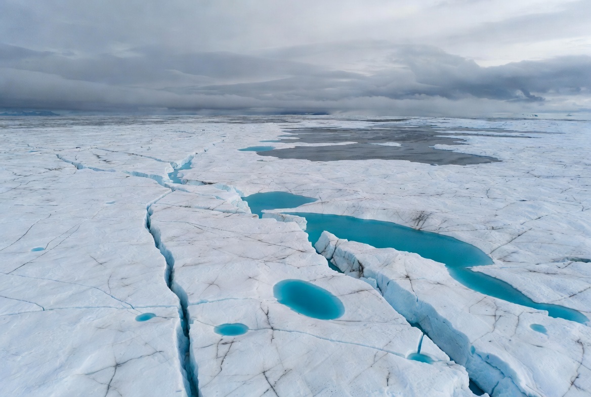 К этому добавляется сажа от лесных пожаров в Канаде и Сибири. Она оседает на лед и тоже уменьшает отражение света. По оценкам группы исследователей из Университета Бристоля, биологическое потемнение увеличивает таяние поверхности на 10-13% в отдельных зонах. Для климатической системы это не «пустяковая поправка», а вполне себе удар кулаком по весам.