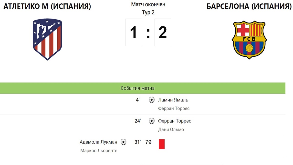 В Лиге Чемпионов сегодня ночью определились два полуфиналиста. Удалось ли Барселоне совершить камбэк и какой английский клуб вылетел? В Мадриде Атлетико принимал соотечественников из Барселоны. Напомню, первый матч завершился победой «матрасников» 0:2. На 4-й минуте Ямаль с передачи Феррана Торреса наказал хозяев за ошибку. К 25-й минуте каталонцы сравняли счет в двухматчевом противостоянии. Ольмо получил мяч на чужой половине, выполнил проникающий на Торреса, который чётко пробил в верхний угол. Ещё в первом тайме Атлетико удалось отыграть один мяч. Лукман здорово пробил мимо Жоана Гарсии в левый верхний (1:2). Во второй половине на 79-й минуте Эрик Гарсия после видеопросмотра получил прямую красную карточку. Атлетико с итоговым счетом 3:2 побеждает Барселона и выходит в полуфинал. Отмечу, что для команды это 5-е поражение в шести последних играх. Ливерпуль после гостевого поражения в Париже со счетом 0:2 принимал в ответной игре ПСЖ. Первый тайм завершился без голов. Дебютного мяча