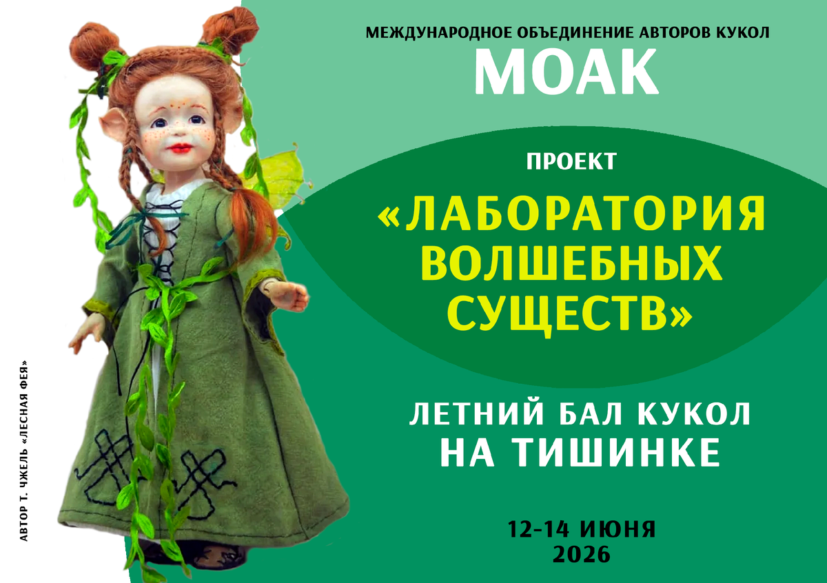 Уважаемые художники! Приглашаем вас принять участие в выставке ЛЕТНИЙ БАЛ КУКОЛ на Тишинке в проекте Международного Объединения Авторов кукол МОАК "ЛАБОРАТОРИЯ ВОЛШЕБНЫХ СУЩЕСТВ". Стать участником проекта может любой мастер по куклам, вступивший в МОАК (анкету присылаем на почту). Куклы, которые могут участвовать в проекте: персонажи любых литературных произведений, фильмов, мультфильмов и анимэ - и реалистичные, и фантастические, главное - волшебные, то есть необычные, придуманные. То есть это может быть образ обычного человека, например, как старуха Шапокляк, но ведь она персонаж сказочной истории, значит, волшебный.