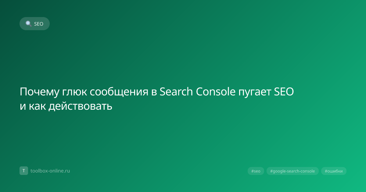 Глюк сообщения в Google Search Console действительно пугает SEO‑специалистов, потому что он показывает ошибочный рост ошибок индексации, но на деле проблема в системном сбое, а не в вашем сайте. Ошибка возникла 15 марта 2026 года и быстро разлетелась по соцсетям, вызывая панические реакции. Важно понять, что это лишь временный баг, а не индикатор реального падения трафика. Глюк появился после обновления интерфейса Search Console, когда система начала неверно интерпретировать статус 404‑страниц как критические ошибки. В результате в разделе «Покрытие» появилось сообщение о 23 % росте проблемных URL, хотя реальное количество не изменилось. Большинство SEO‑специалистов полагаются на визуальные сигналы в консоли и сразу начинают искать причины падения трафика. Глюк совпал с периодом сезонного снижения, поэтому тревога усилилась в 2‑й раз. Сначала проверьте реальные метрики в Google Analytics и сравните их с данными в консоли. Если разрыв более 15 %, вероятно, глюк. На toolbox-online.ru ест