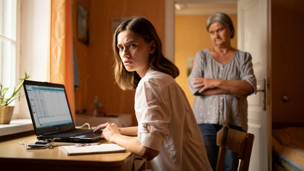 Марина работала из дома — закрывала квартальный отчёт, и это был непростой день: один из клиентов требовал срочных правок, коллега прислал таблицу с ошибками, телефон не умолкал. Она сидела в спальне, дверь была закрыта, на столе — три открытых окна с цифрами.