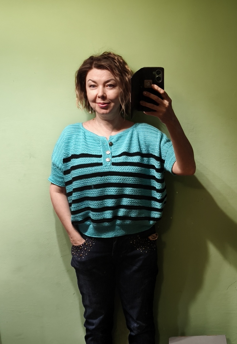 Сегодня придумала совместить "Голубую пчёлку" с джинсами.