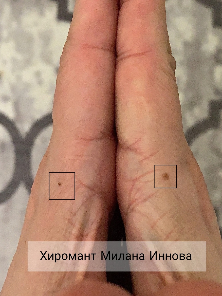 🚩Родинки в самом начале истока линии Головы и линии Жизни🚩