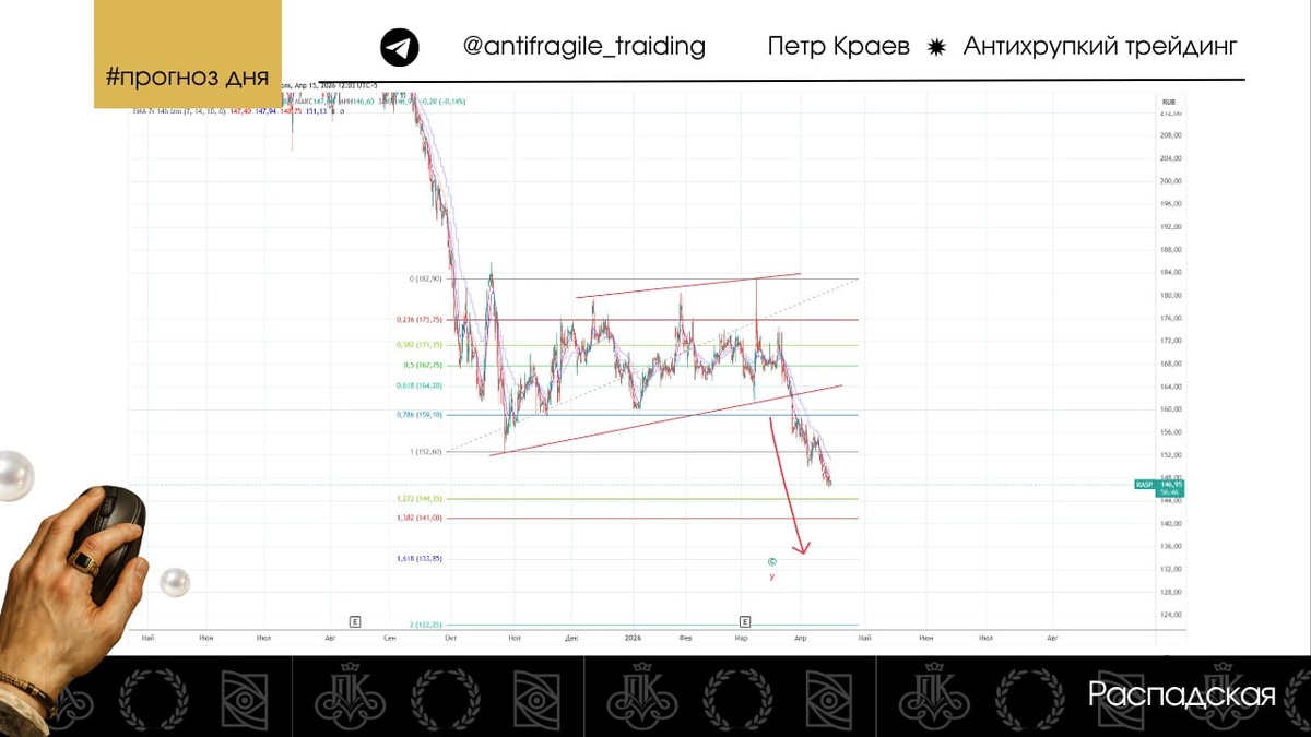 Отлично отрабатывает мой прогноз от 11 февраля. Во всю идет реализация паттерна на падение, о котором рассказывал в прошлом посте. Цель фигуры немного скорректировалась - сейчас она проходит на уровне 133,85. Поэтому пока что ориентируюсь на этот уровень, как основной. 👁️🗨️Ссылка на график: https://www.tradingview.com/x/v36XEWqE/ Данное сообщение носит информационный характер и не является индивидуальной инвестиционной рекомендацией.