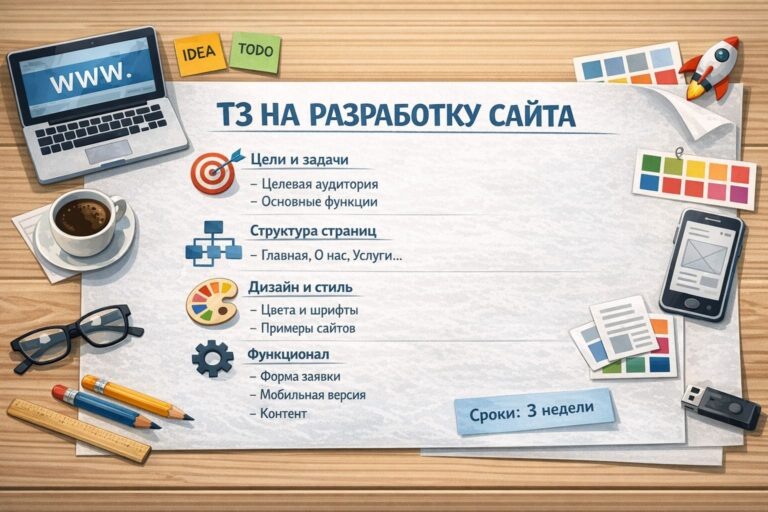 Ссылки на сайты-референсы — что нравится по стилю. Фирменные цвета, шрифты, логотип (если есть). Требования к адаптивности: какие разрешения экрана должны поддерживаться, на каком устройстве сайт должен работать в первую очередь. В 2025 году мобильный трафик превышает десктопный у большинства сайтов — mobile first не опция, а необходимость.