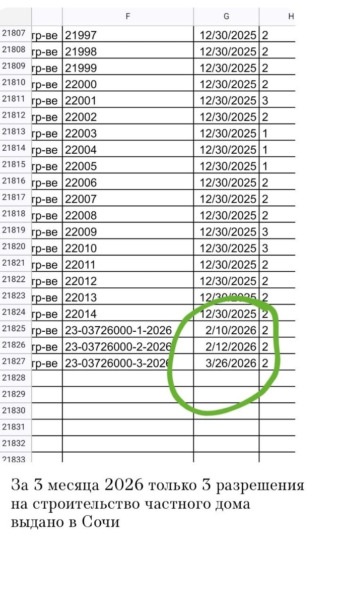 С чем связано, могу только догадываться. Возможно ждут изменения границ зон горно-санитарной охраны. А может принятия новых ПЗЗ (правил землепользования и застройки). Возможно, появились новые охранные зоны. Кто знает причины отказов, напишите пожалуйста в комментариях 💬 Но это хорошо для тех, кто продает готовый дом или землю с оформленным уведомлением на строительство. Вам сейчас не составляют конкуренцию земельные участки без разрешения. 📌Каждый месяц списки с кадастровыми номерами участков публикует Земконтроль #сочиполюбви