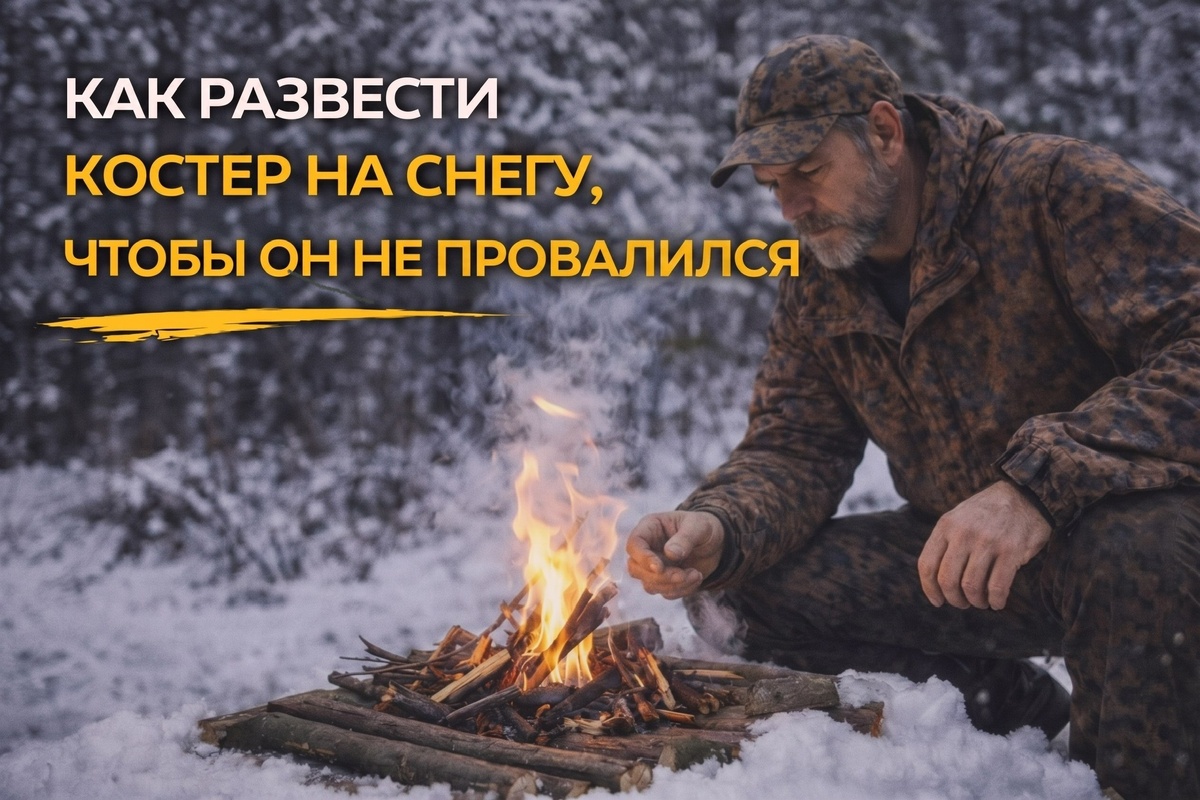 Проблема в том, что снег начинает таять, и костёр постепенно уходит вниз.