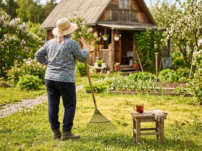 Что делать: Лучше всего, конечно, использовать скарификатор. Если на вашем участке есть газон- эта покупка оправдает себя тысячу раз. Но если его пока нет, что же.. берем жесткие веерные грабли и хорошенько, с нажимом, прочесываем газон вдоль и поперек. Да, это отличный фитнес! Главное — без фанатизма, поберегите поясницу. Работайте в удовольствие, с перерывами на чай. Земля за зиму спрессовалась так, что стала похожа на асфальт. Корни под ней просто задыхаю