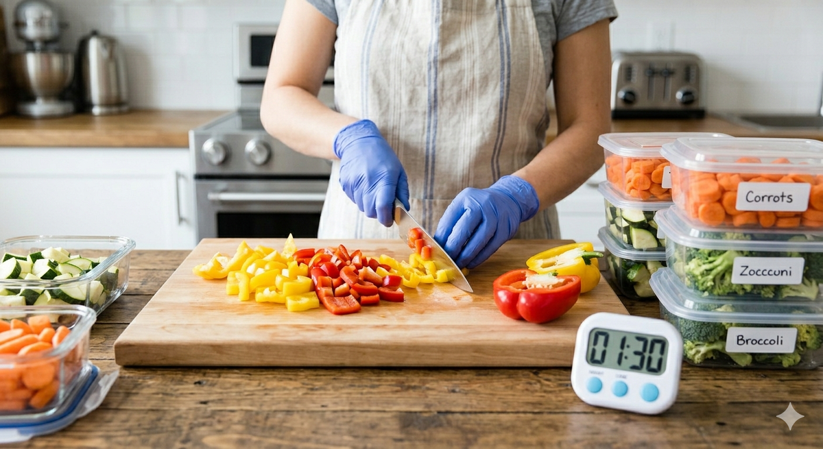 - Подготовьте овощи: Помойте, очистите и нарежьте овощи для всех блюд. Сложите их в отдельные контейнеры или пакеты с зип-локом. Это самый трудоемкий, но и самый важный этап.