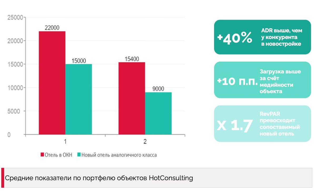 x 1.7 RevPAR превосходит сопоставимый новый отель не в ОКН