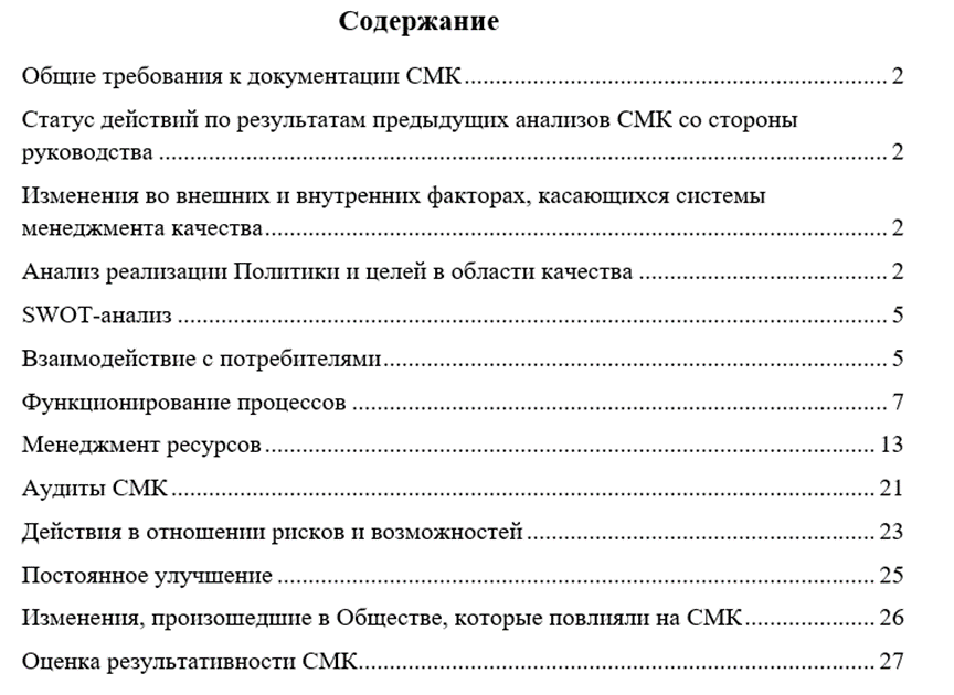 Доброго времени суток. В настоящее время на предприятиях возникает необходимость внедрения системы менеджмента качества и соответственно создание отчетов о её функционировании. Сейчас без этого никуда. Опустим что это, зачем это…раз Вы ищете как сделать отчет, значит основы СМК вам известны. Рассмотрим структуру отчета. Итак, из чего должен состоять отчет? Внешний аудитор за основу берет стандарт ISO9001 (национальный стандарт ГОСТ Р ИСО 9001) и указывает нам на п.9.3 «Анализ со стороны руководства». Исходя из этого, «рождается содержание»: Конечно, разделов может быть и больше, но точно не должно быть меньше. Названия разделов также могут быть другие, но смысловая нагрузка и содержания должны соответствовать требованиям п. 9.3 «Анализ со стороны руководства» стандартов ISO 9001/ ГОСТ Р ИСО 9001. Отчет должен быть не только информативным, но и зрелищным (проверяющим это нравится😊). Не скупитесь на графики, диаграммы, таблички, фото, схемы. Рассмотрим содержание разделов: 1. Общие треб
