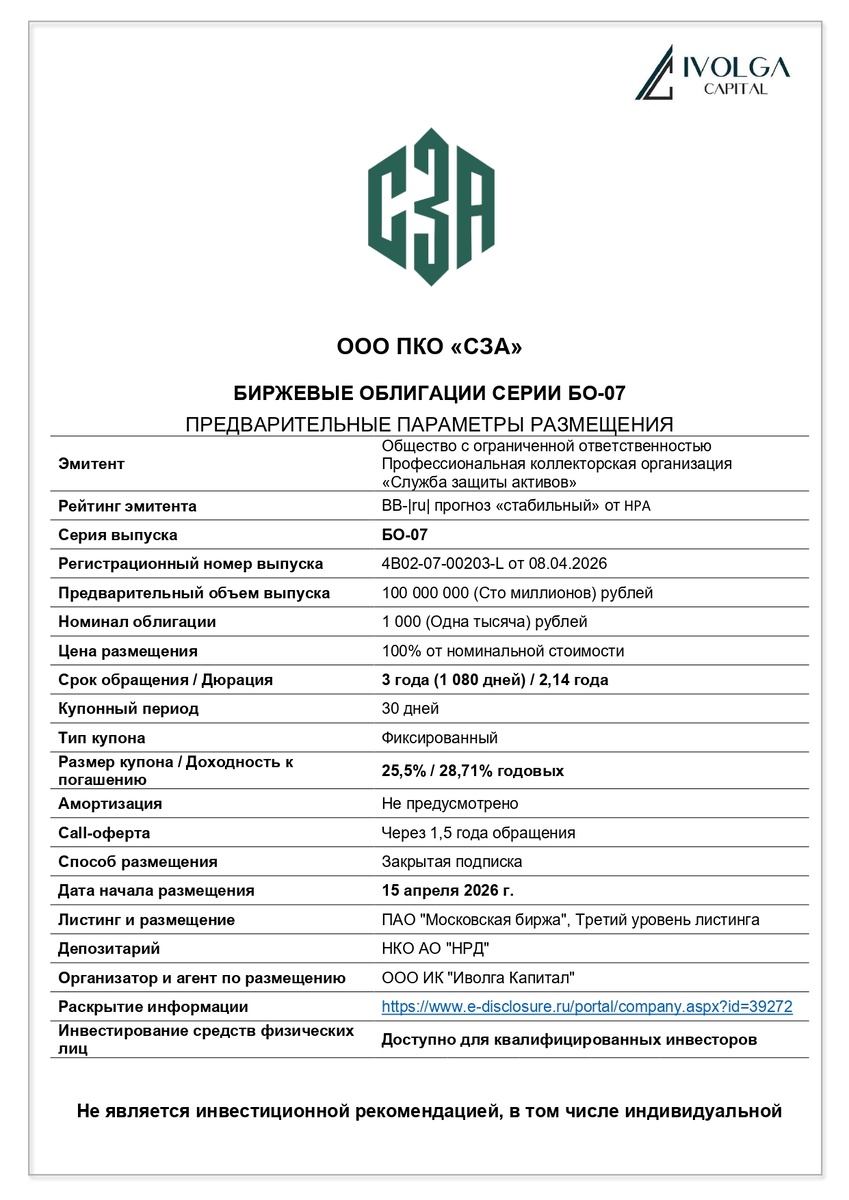 Сегодня, 15 апреля, стартует размещение облигаций коллекторского агентства СЗА