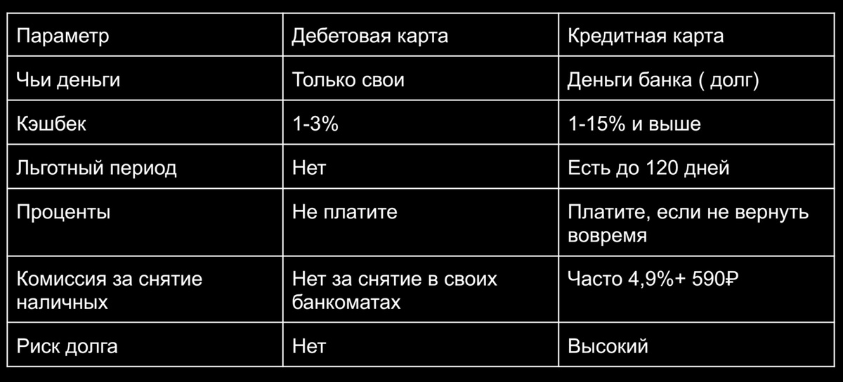 🧠 Чем отличается дебетовая карта от кредитной?