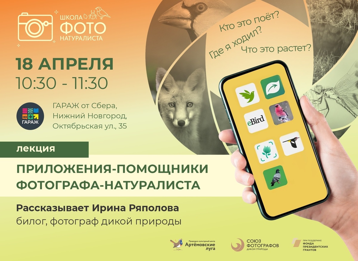 Когда фотограф начинает снимать природу, он неизбежно сталкивается с вопросом: «А что я снял?» Как определять виды растений, птиц и насекомых по фотографии? И не только это: смартфон может помочь узнать созвездие, поймать северное сияние или не заблудиться в незнакомом месте. На лекции «Приложения-помощники фотографа-натуралиста» разберём, какие инструменты делают съёмку и обработку наблюдений проще и полезнее. В программе: — платформы iNaturalist, Birdbook, Merlin Bird ID, xeno-canto и другие — для хранения, коллекционирования и идентификации видов; — алгоритм определения вида по фотографии: ключевые признаки, ракурсы, поиск аналогов; — приложения для планирования маршрутов, навигации и поиска природных явлений; — возможности научного волонтёрства через платформы учёта биоразнообразия. Ведущая — Ирина Ряполова — биолог, бёрдвотчер, фотограф дикой природы. 📍 Где: Пространство «Гараж» от Сбера, ул. Октябрьская, 35. 🗓 Когда: 18 апреля, суббота, 10:30–11:30 🎫 Вход: бесплатный, по п