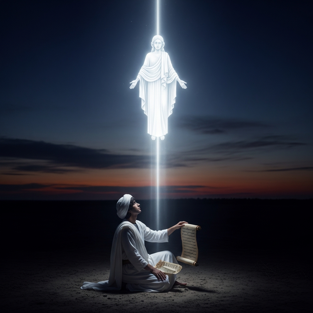Когда мальчику исполнилось двенадцать лет, произошло событие, перевернувшее его жизнь. Ему явился «Двойник» — небесное существо, которое в манихейских текстах именуется Параклетом, Утешителем, или Сотоварищем. Этот Двойник возвестил, что Мани избран для восстановления истинной веры, искаженной человеческими толкованиями. Второе откровение последовало ровно через двенадцать лет, в апреле 240 года, когда Мани исполнилось двадцать четыре. На этот раз Двойник приказал ему покинуть общину крестителей и начать открытую проповедь.