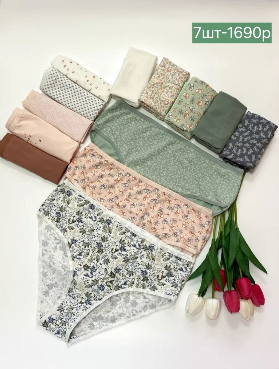 Поступили в продажу женские трусы, производство Турция, упакованы в наборы по 3шт-890р, 5шт - 1390р и 7 шт -1890р, из хлопка , средняя и