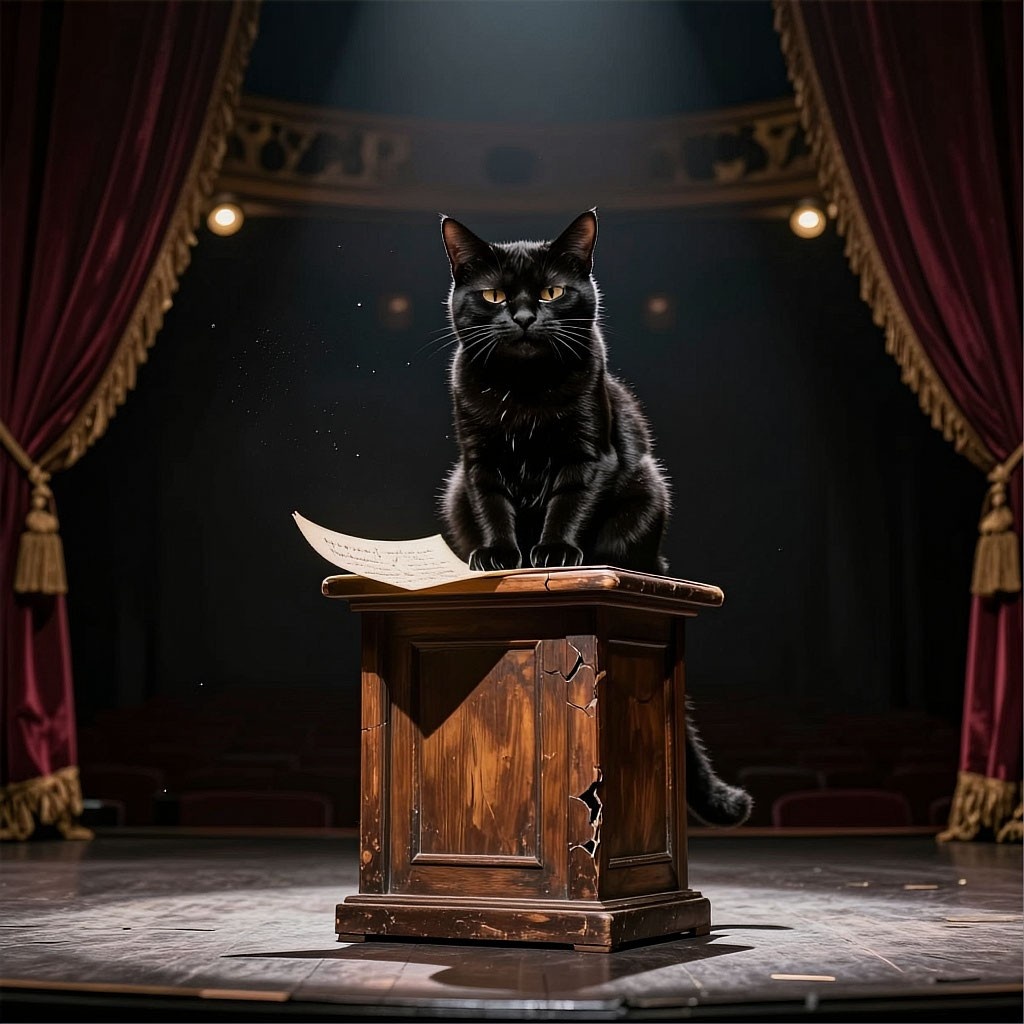 Кот‑режиссёр. Главное? Чтобы зрители не уснули до антракта. 😴 Шучу. 😅 Хотя… в каждой шутке есть доля правды. А если серьёзно — чтобы зритель поверил. Не в декорацию, не в грим, а в то, что происходит здесь и сейчас. ✨