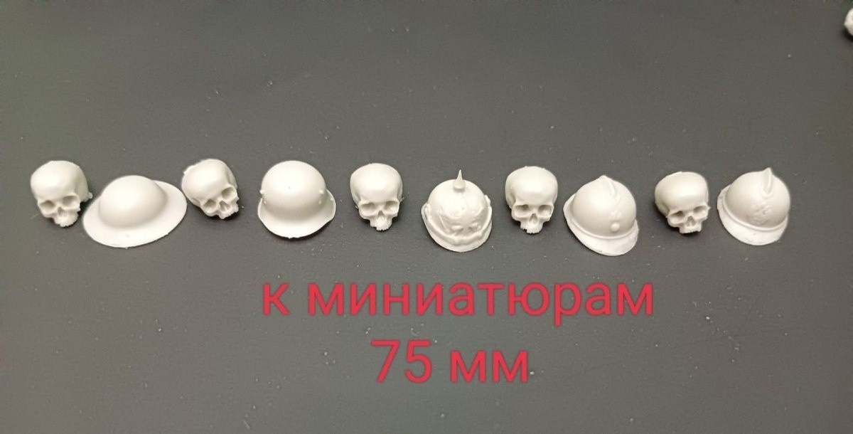 Санкт-петербургская Shot. mini выпустила каски периода Первой мировой войны и черепа в дополнение к фигурам в масштабе 1/24 (75 мм) из полиуретановой смолы.