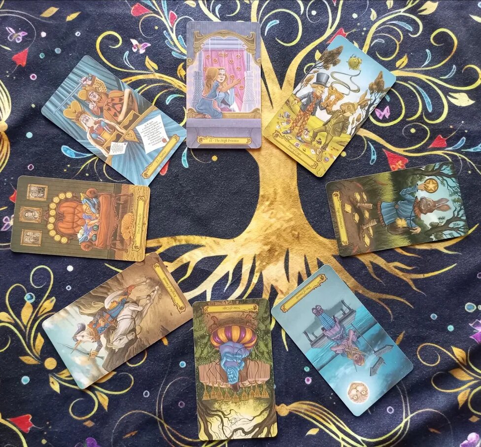 Что ж, наше путешествие по Стране Чудес подошло к концу. Мы проследили путь от интуитивного зова до обретения внутренней гармонии и справедливости. Помните, что Таро — это не фатум, а лишь карта сокровищ, на которой отмечены возможные тропы. Какой бы путь вы ни выбрали, самое главное сокровище вы уже несете в своем сердце.