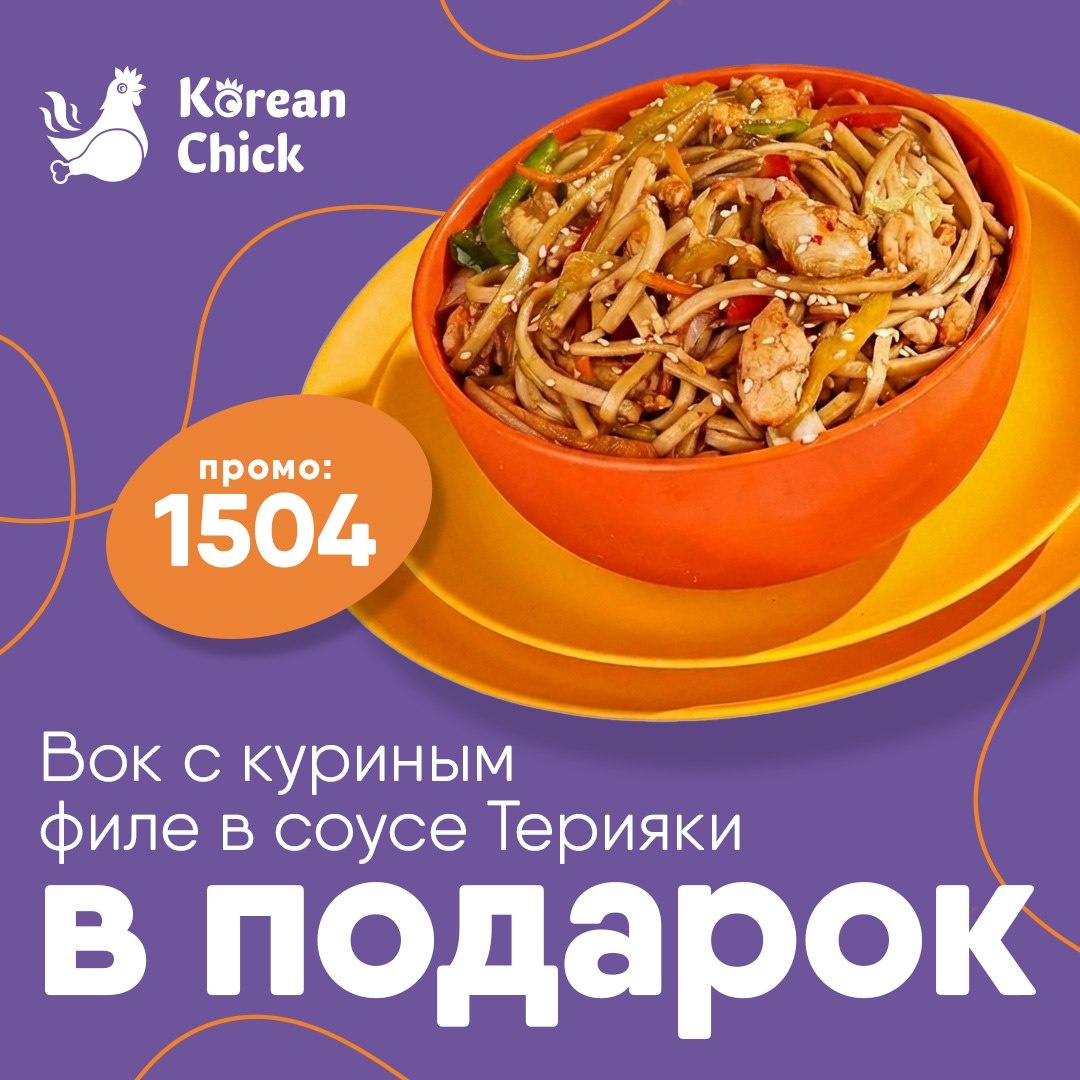 🟣🟣🟣🟣🟣🟣🟣🟣🟣 Вок с куриным филе в соусе Терияки при заказе от 1490 рублей! Промо: 1504 Положите в корзину Вок с куриным филе в соусе Терияки, применить промокод 1504 в корзине и получите скидку 100% на блюдо! ➡️Предложение действует до 21 апреля включительно; ➡️Промокод действует на сайте и в мобильном приложении; ➡️Не суммируется с другими акциями и скидками. ⭐️ Сайт | IOS | Android ⭐️