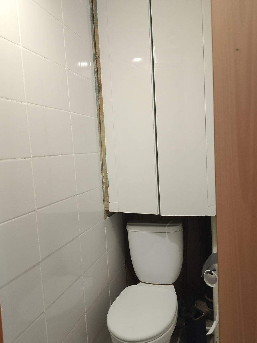 Муж в итоге решил сам положить кафель в туалете .